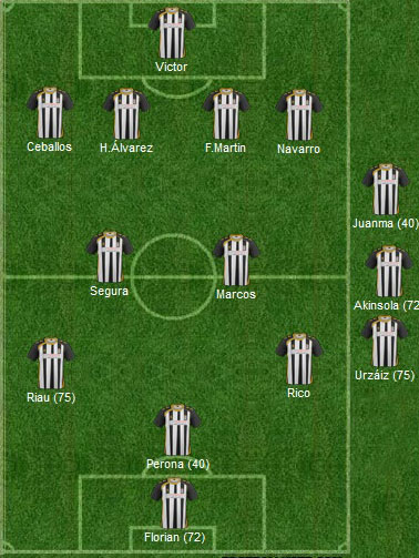 Perona y Florian acompañaron como meros espectadores del encuentro, mientras que los carriles Cañadas y Rico estuvieron bien sujetos por una defensa visitante muy bien colocada, que apenas sufrió los envites de los locales.